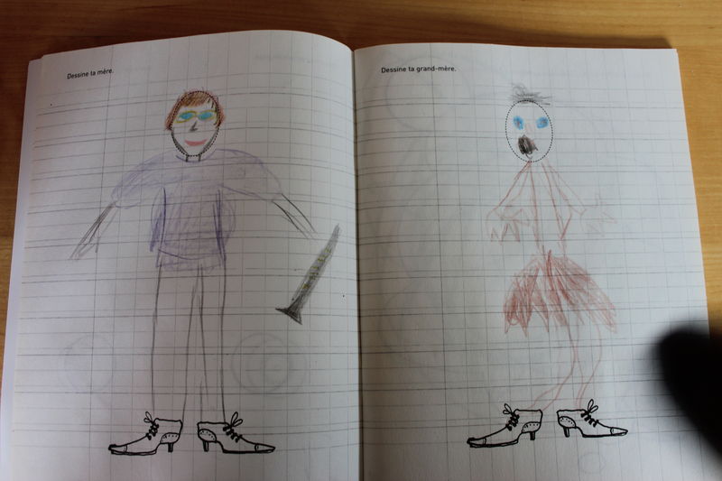 Aujourd’hui le thème était « dessine ta maman » pour maman et « dessine ta grand-mère » pour Sarah