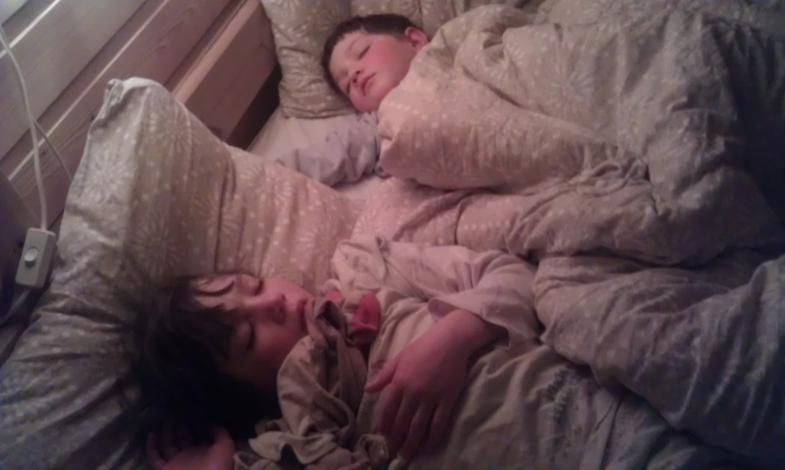 On a fait papatte mêlées et on s’est endormis comme 2 petits anges….jusqu’a ce que papa et maman demandent une petite place pour pouvoir dormir eux aussi.
