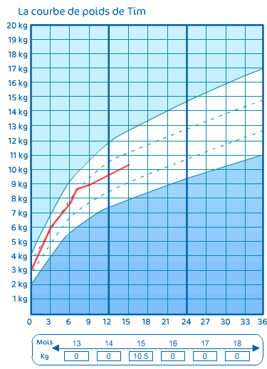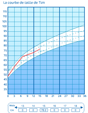 Bref notre petit gars est normal, tellement normal qu’il vise pile la moyenne des courbes de poids et taille !