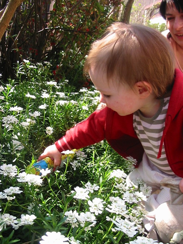 D’abord chez mamie bisous et papie JP on a cherché les oeufs et fait des bisous cous…beaucoup.