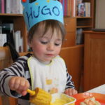 Sarah et Timothé étaient super contents de fêter l’anniversaire de Hugo, qui s’est très vite glissé dans la peau de la star.