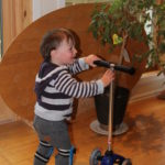 il a passé une très belle journée et il a bien étrenné sa nouvelle trottinette.