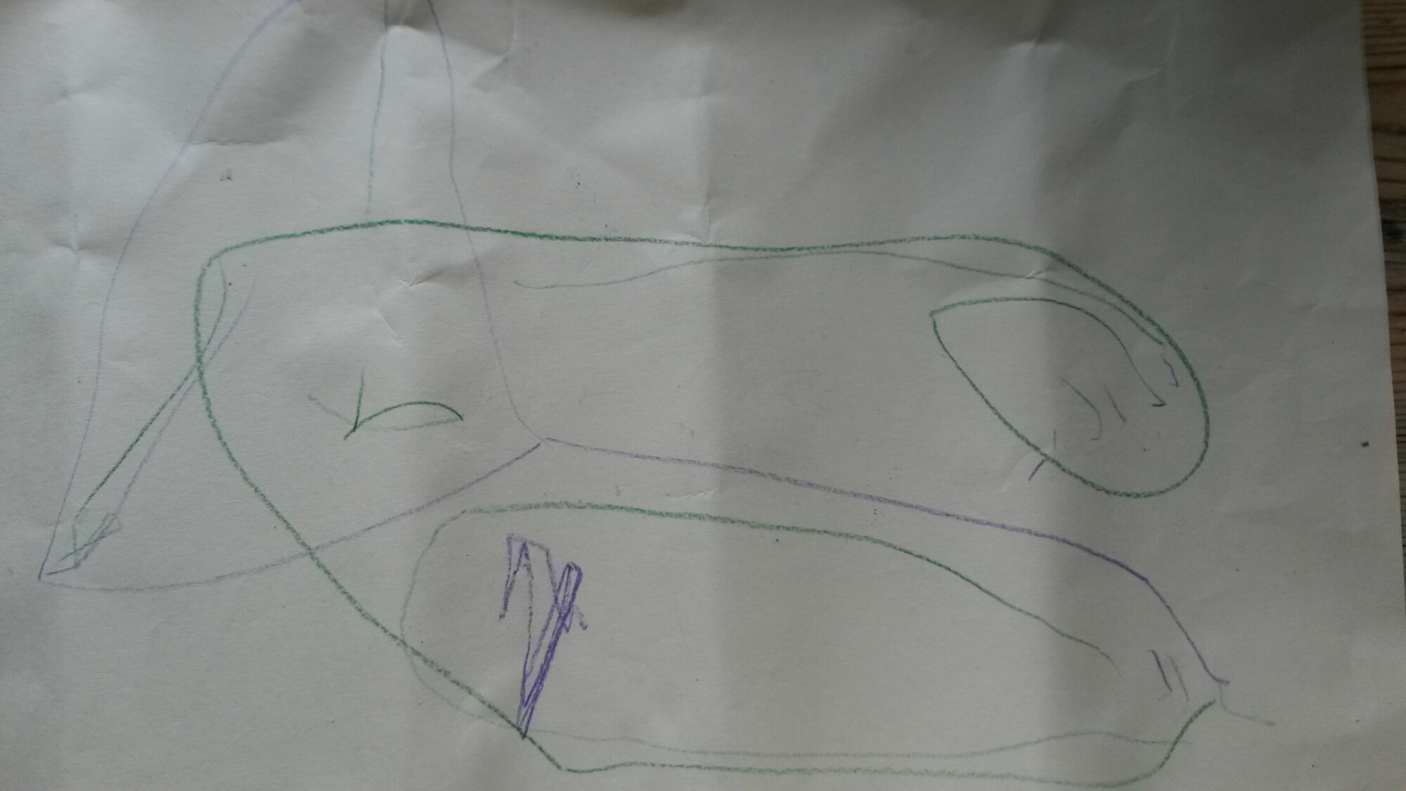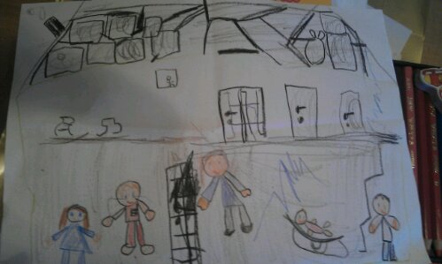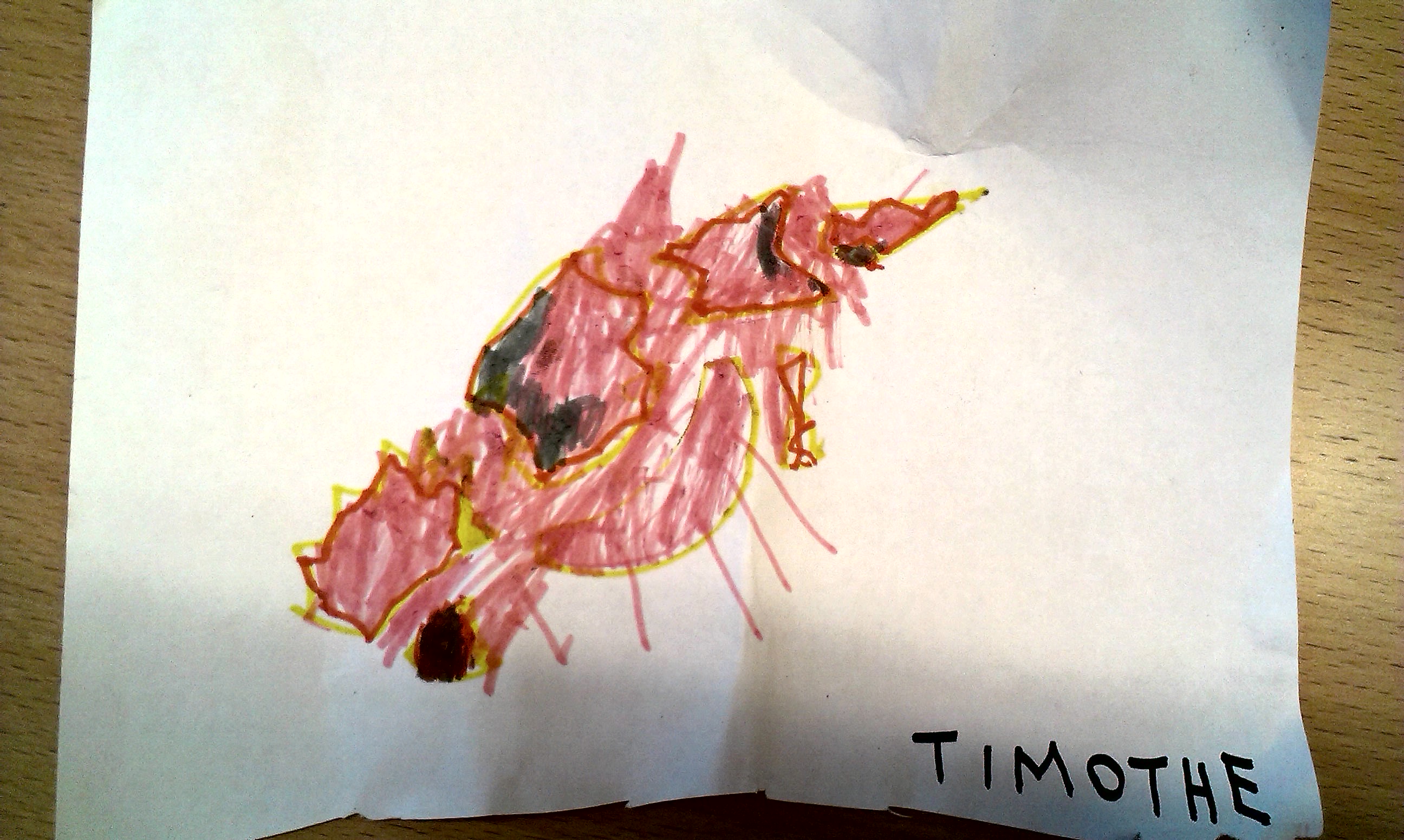 Hugo « maman j’ai dessiné une vatu de cou’sse. Et là c’est un oiseau mort passeke je sais pas dessiné les avions »