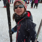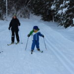 Timothé et son premier sourire sur skis de fond, lâchant prise dans une descente