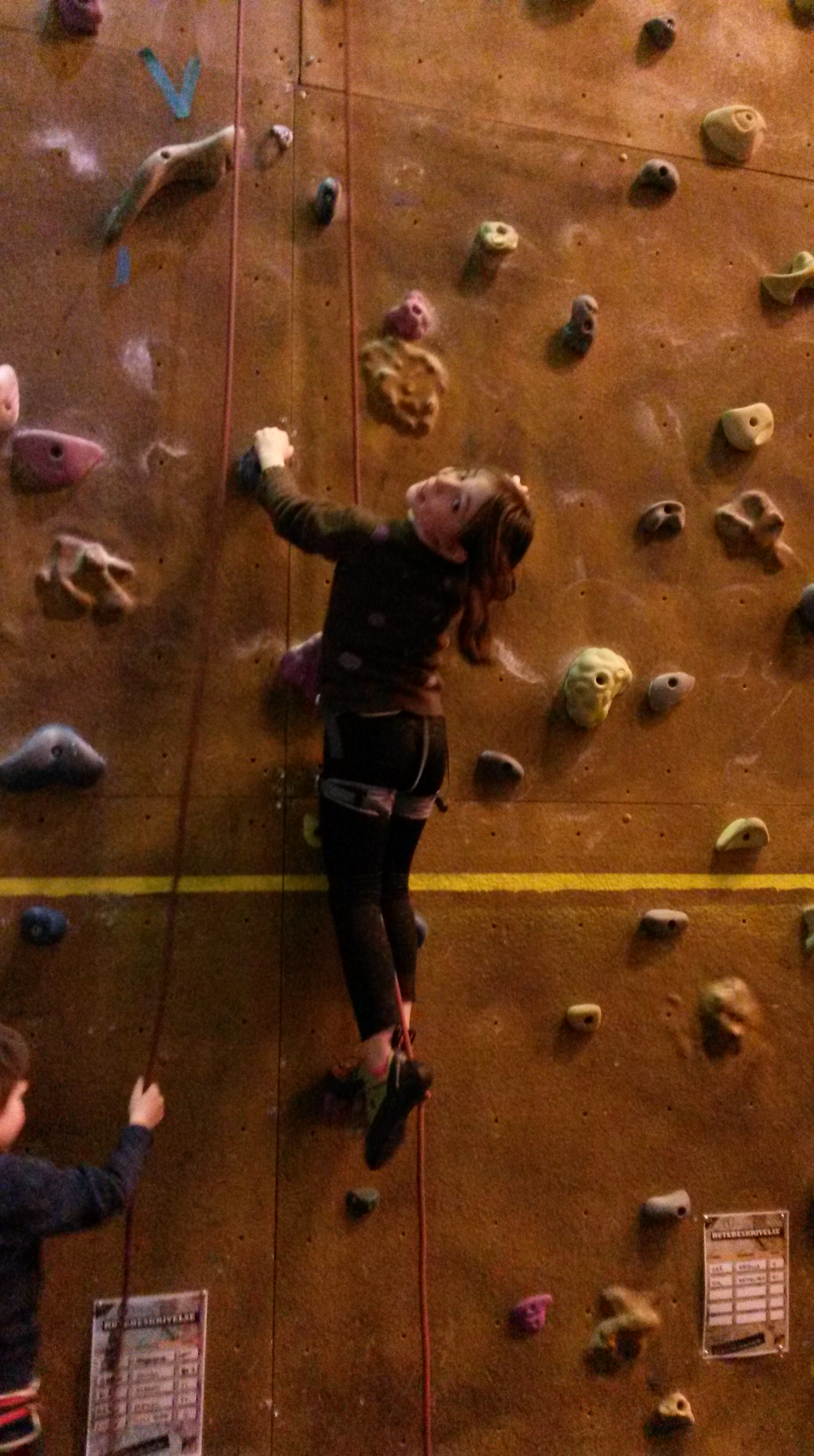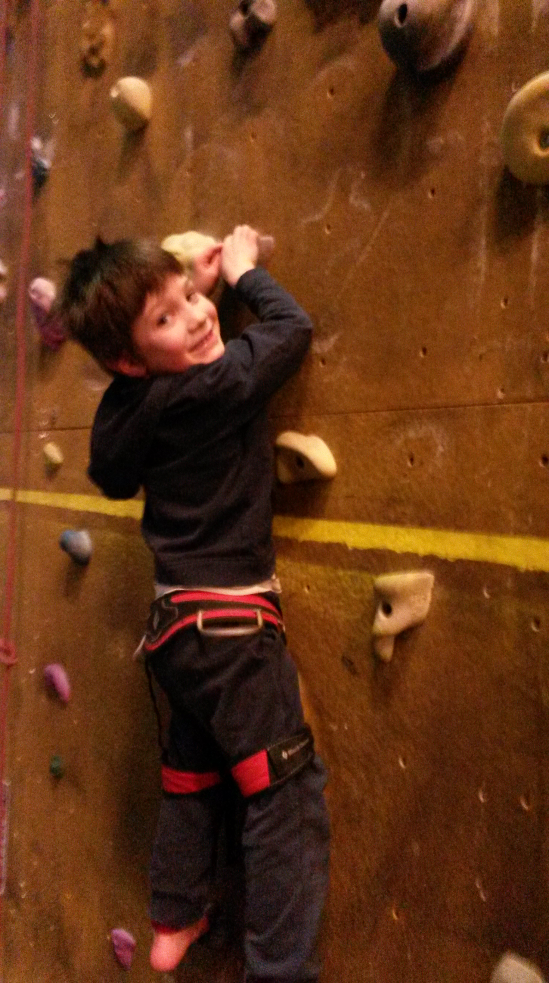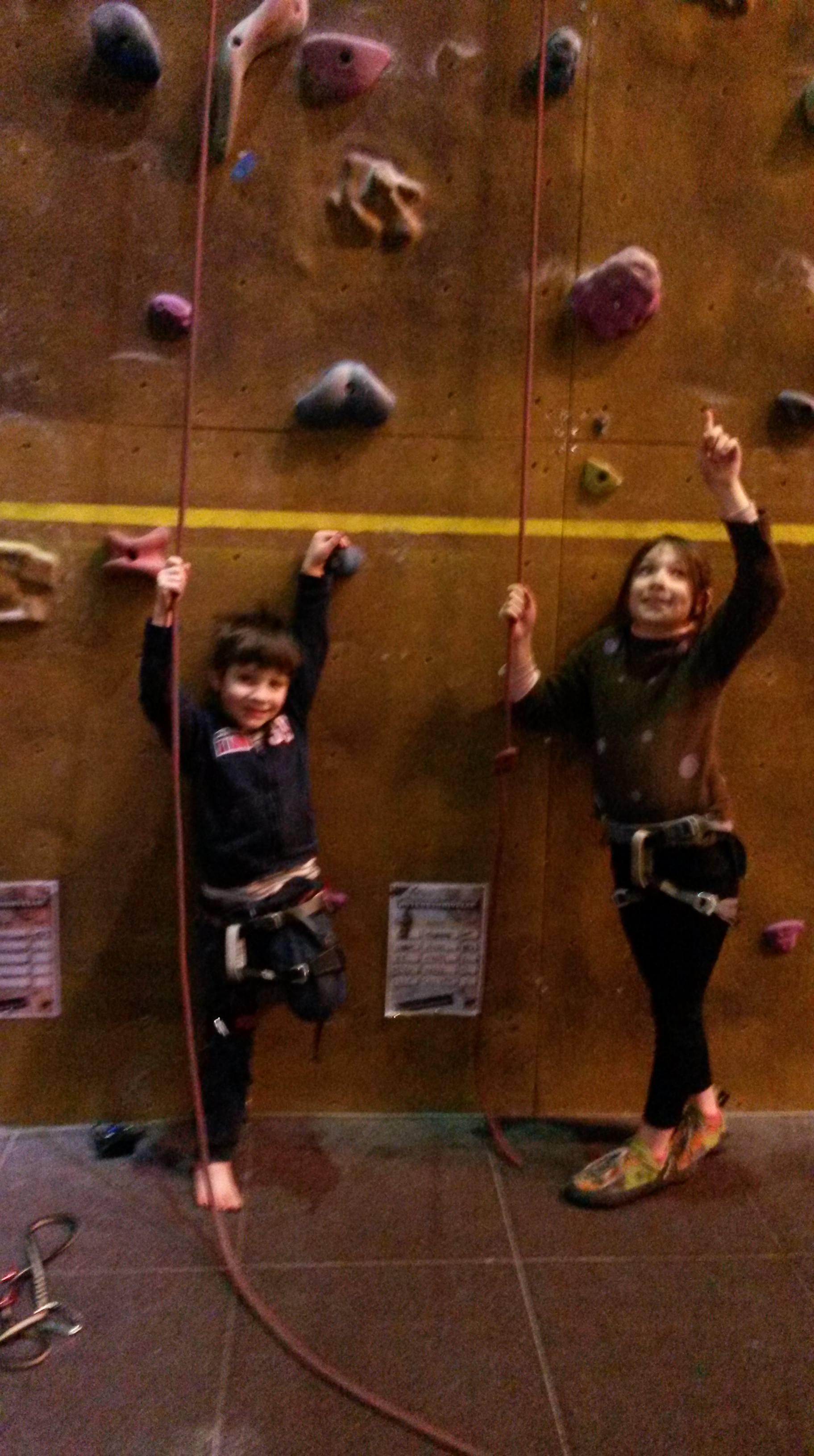 Comme maman l’avait promis, un dimanche pluvieux on est allés à la halle d’escalade. Maman nous a assurés et nous on est montés jusqu’a 9 mètres. On a hâte d’y retourner