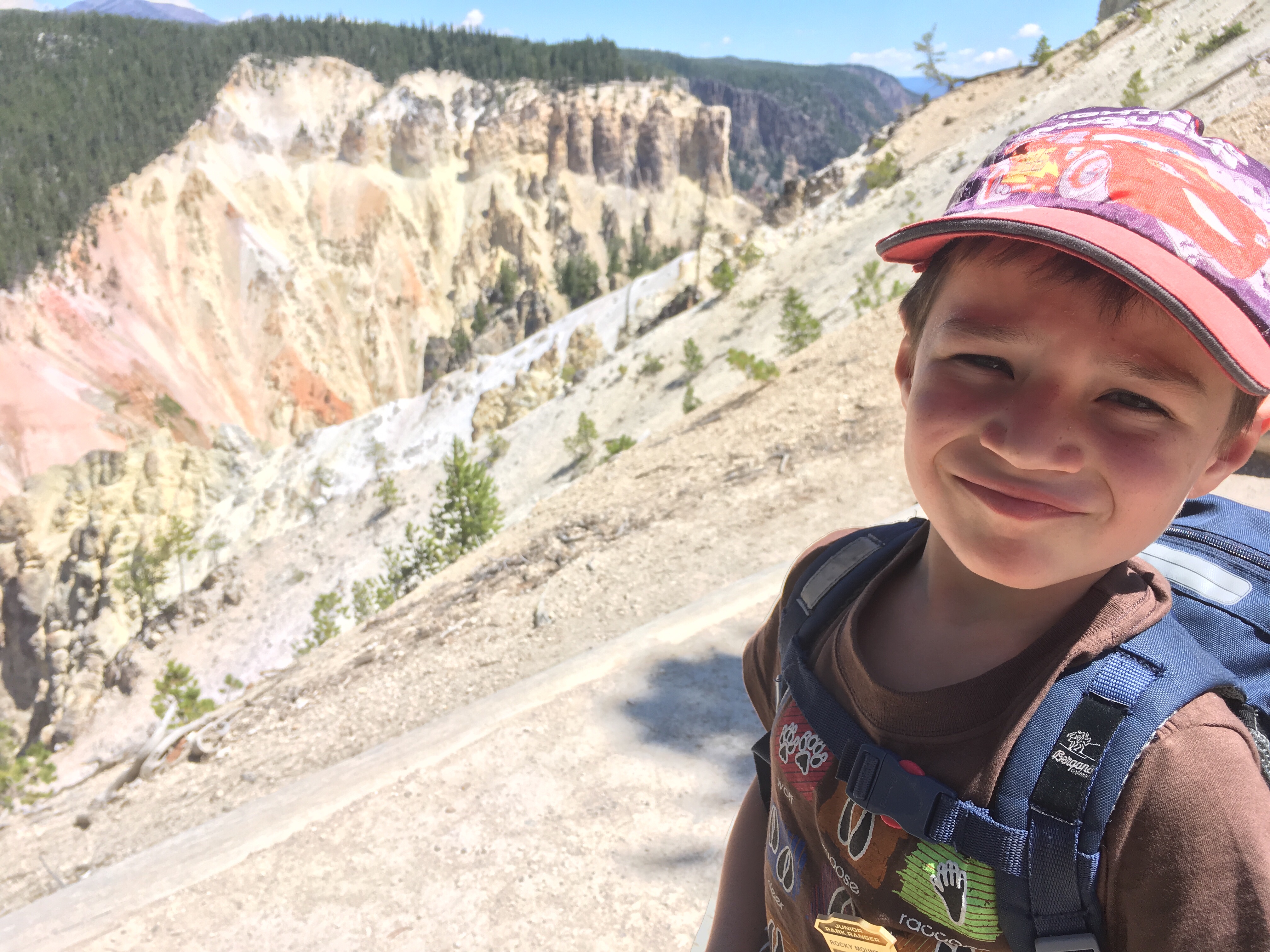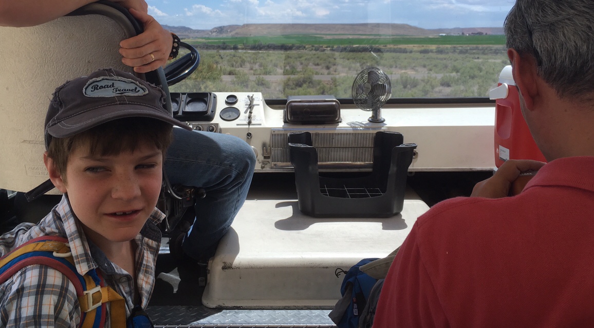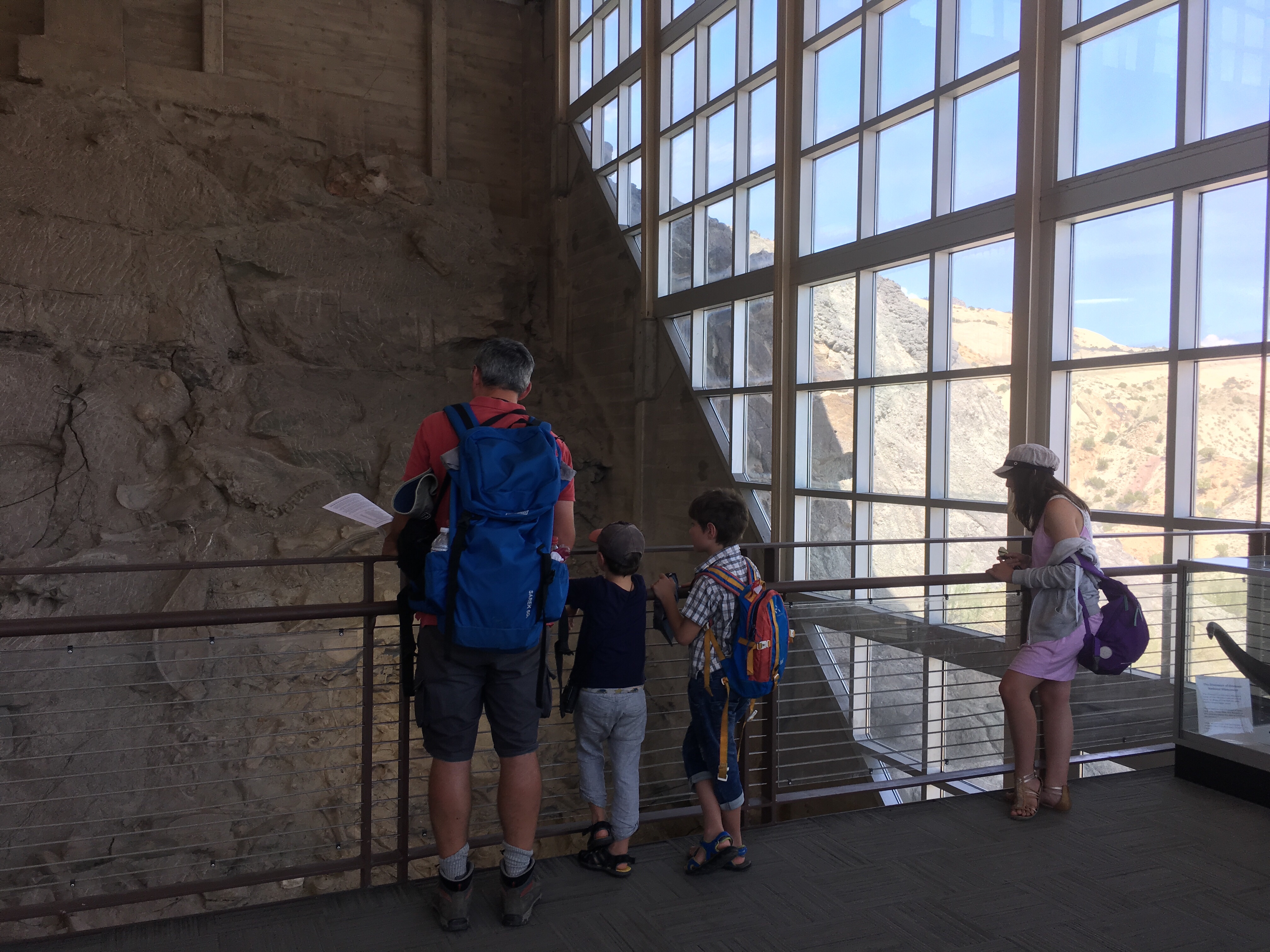 De vrais squelettes en masse! Préservés dans la roche, protégés par une verrière, des rangers super pédagogiques, un petit train pour nous éviter de marcher par 40 degrés et Hugo absolument fasciné! C’est de là que vient le grand squelette de diplodocus qui l’avait impressionné à Denver.