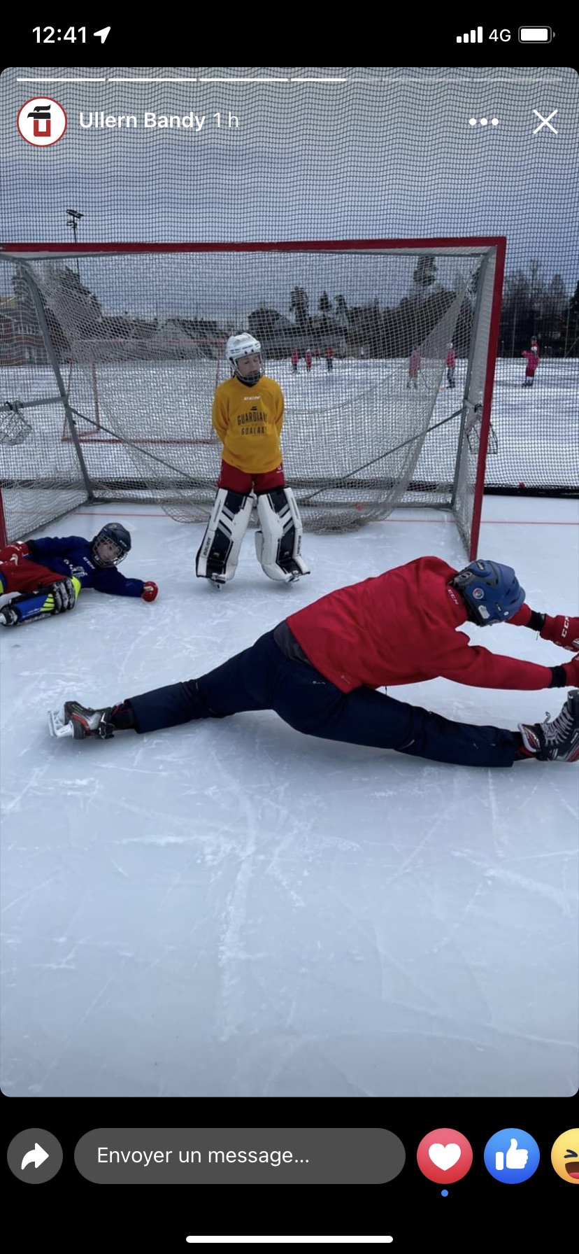 Hugo a décidé de suivre l’exemple de son aîné et se spécialiser comme gardien au bandy (hockey sur glace sur grand terrain extérieur et sans contact – très populaire en Scandinavie et Pays du Nord) . Il nous impressionne par son énergie et son leadership!