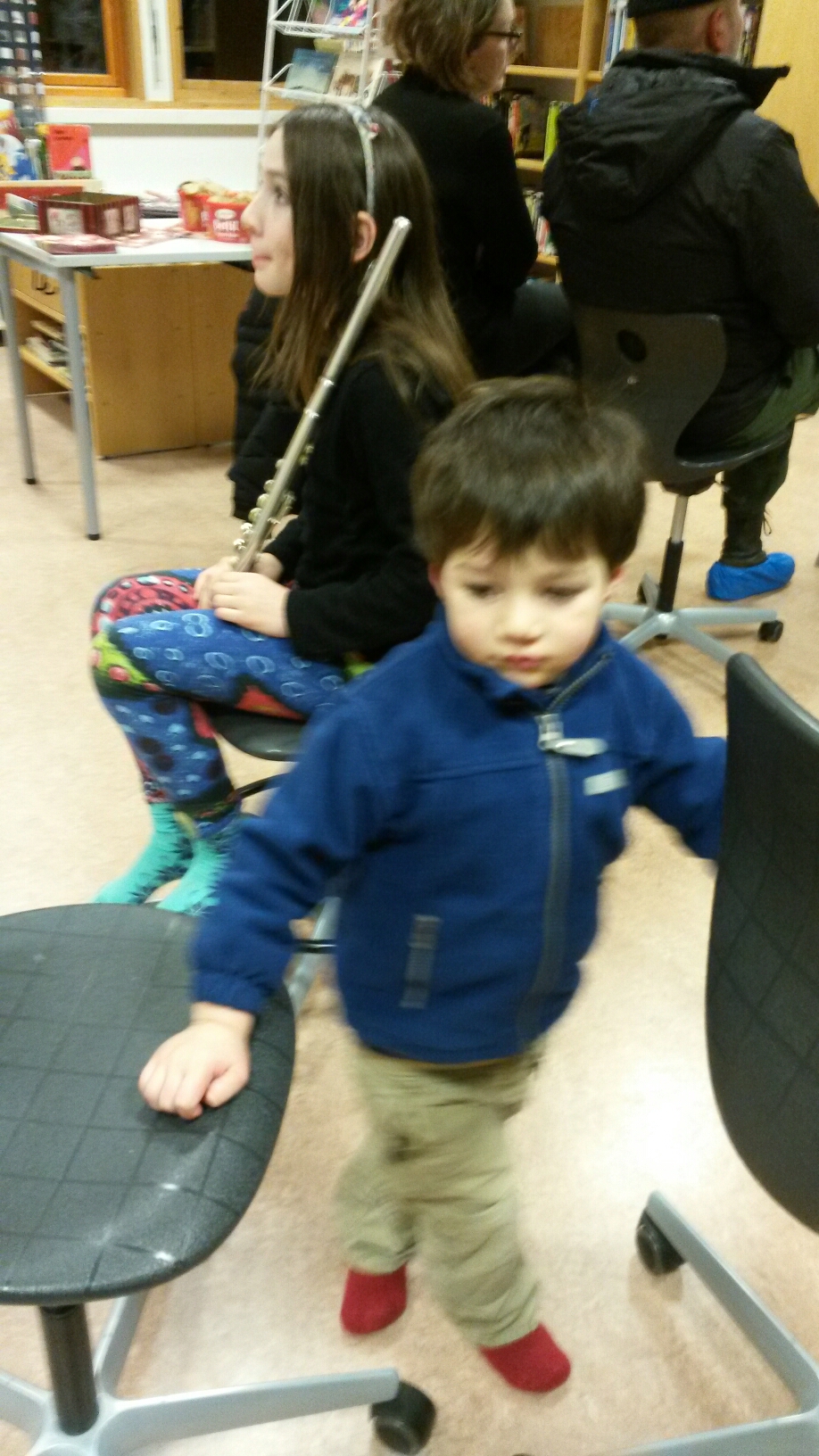 Timothé était super fier, super excitée, très intrigué par l’énorme contrebasse derrière lui et ces spectateurs du parterre aux balcons mais il a réussi à se canaliser et bien jouer et chanter.