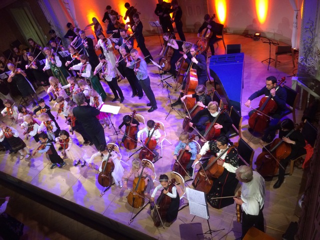 Hier soir dans la très belle salle de balle de la loge des francs-maçons, les « minis » ont été invités à jouer avec les jeunes talents de l’orchestre de musique de chambre et Arve Tellefsen lui-même ! (le plus célèbre violoniste norvégien vivant).