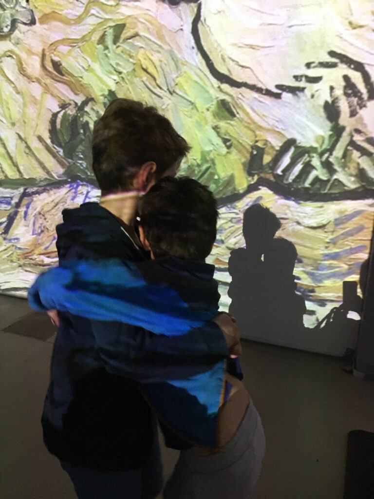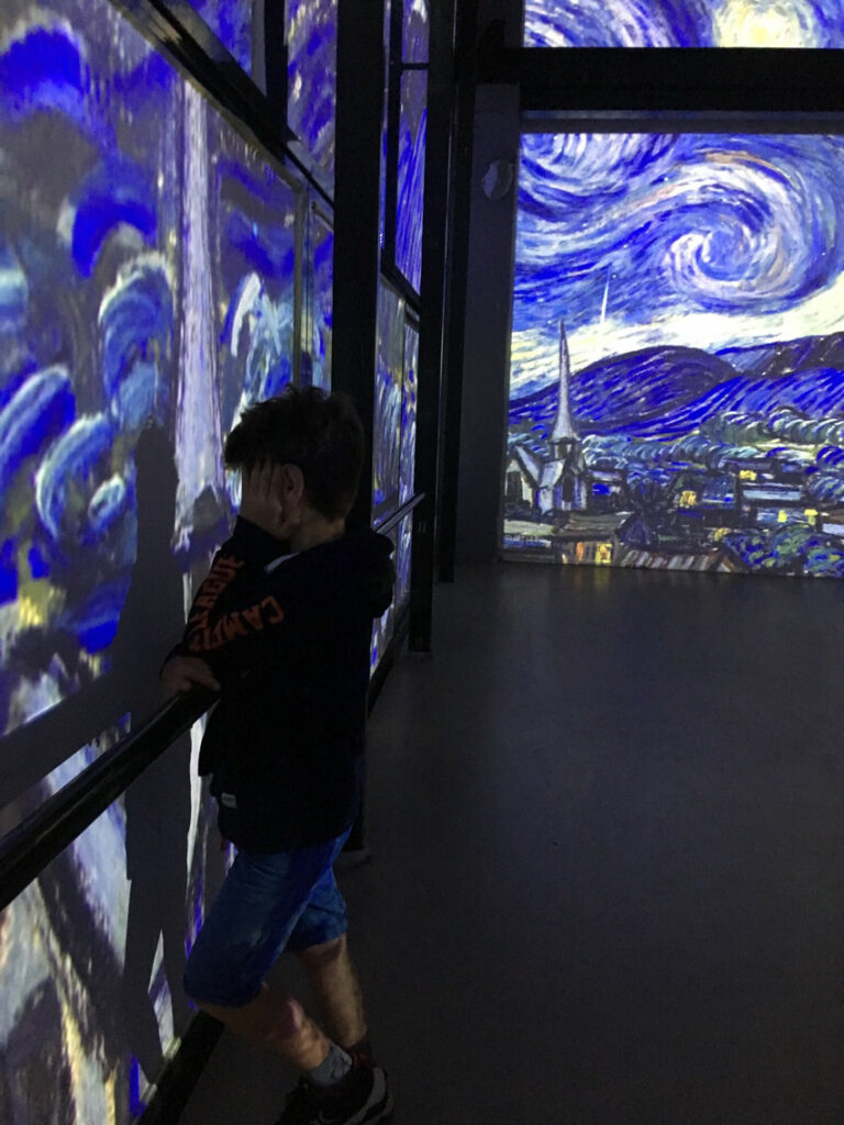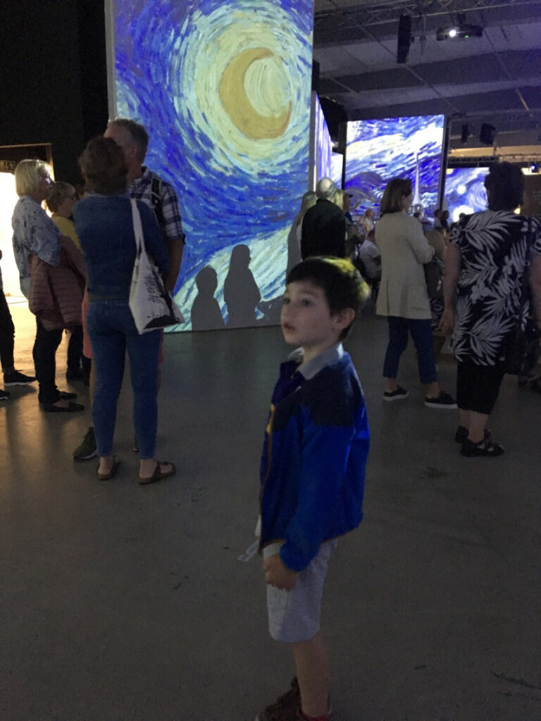 Ce week-end pour se sortir quand même on a été jusqu’à une fabrique de verres, exposition soufflerie mais aussi un hangar qui abrite une chouette présentation vidéo de VanGogh. Très beau.